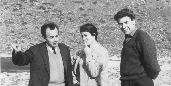 Ο Μιχάλης Κακογιάννης, η Ειρήνη Παπά και ο Μίκης Θεοδωράκης στα γυρίσματα της ταινίας του Ζορμπά / Φωτογραφία: ΑΠΕ-ΜΠΕ