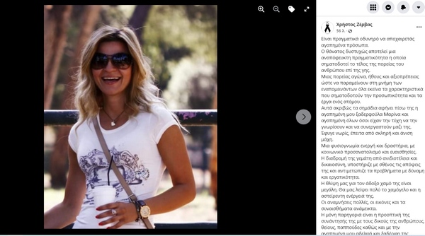 Ο Χρήστος Ζέρβας σε ανάρτηση στη σελίδα του στο Facebook, αναφέρει, εκτός των άλλων, για την απώλεια της Μαρίνας Οικονόμου: «Η θλίψη μας για τον άδοξο χαμό της είναι μεγάλη. Θα μας λείψει πολύ το χαμόγελο και η αστείρευτη ενέργειά της. Όλα αυτά θα μας λείψουν αγαπημένη μου ξαδέλφη. Τα αληθινά και τα αυθεντικά. Για όλα αυτά θα σε κρατήσουμε σφιχτά στη μνήμη μας και θα σε θυμόμαστε πάντα».