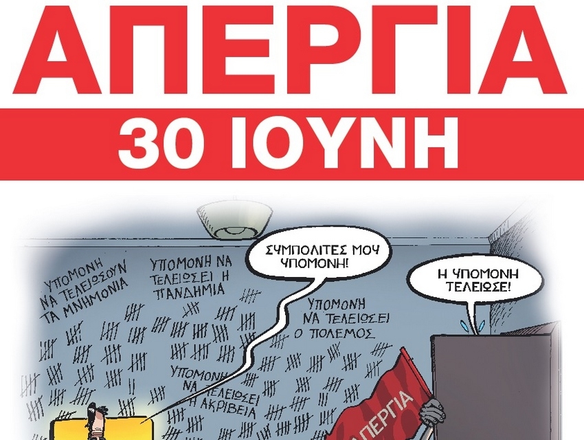«ΣΥΜΜΕΤΕΧΟΥΜΕ ΜΑΖΙΚΑ ΣΤΗΝ ΑΠΕΡΓΙΑ ΤΗΝ ΠΕΜΠΤΗ 30 ΙΟΥΝΗ! ΣΤΕΛΝΟΥΜΕ ΙΣΧΥΡΟ ΜΗΝΥΜΑΣΤΗΝ ΕΡΓΟΔΟΣΙΑ ΟΤΙ ΔΕΝ ΚΑΝΟΥΜΕ ΠΙΣΩΑΠΟ ΤΟΝ ΔΙΚΑΙΟ ΑΓΩΝΑ ΜΑΣ ΓΙΑ ΤΗΝ ΥΠΟΓΡΑΦΗ ΚΛΑΔΙΚΗΣ ΣΥΛΛΟΓΙΚΗΣ ΣΥΜΒΑΣΗΣ ΕΡΓΑΣΙΑΣ!