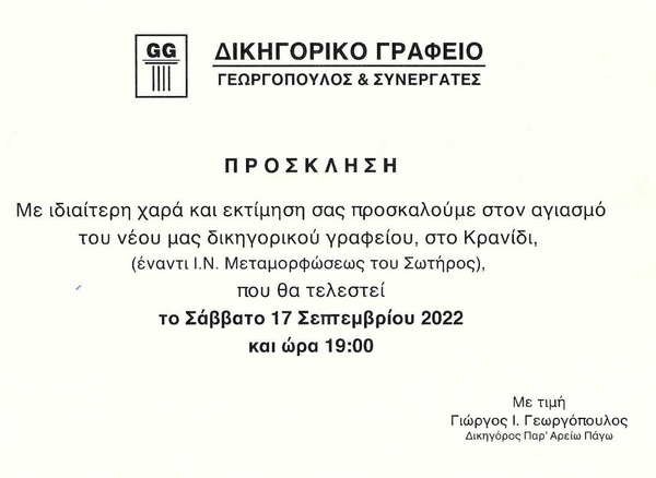 Ο Γιώργος Γεωργόπουλος, γνωστός δικηγόρος στην περιοχή της Ερμιονίδας και όχι μόνο, εγκαινιάζει νέο δικηγορικό γραφείο στο Κρανίδι…