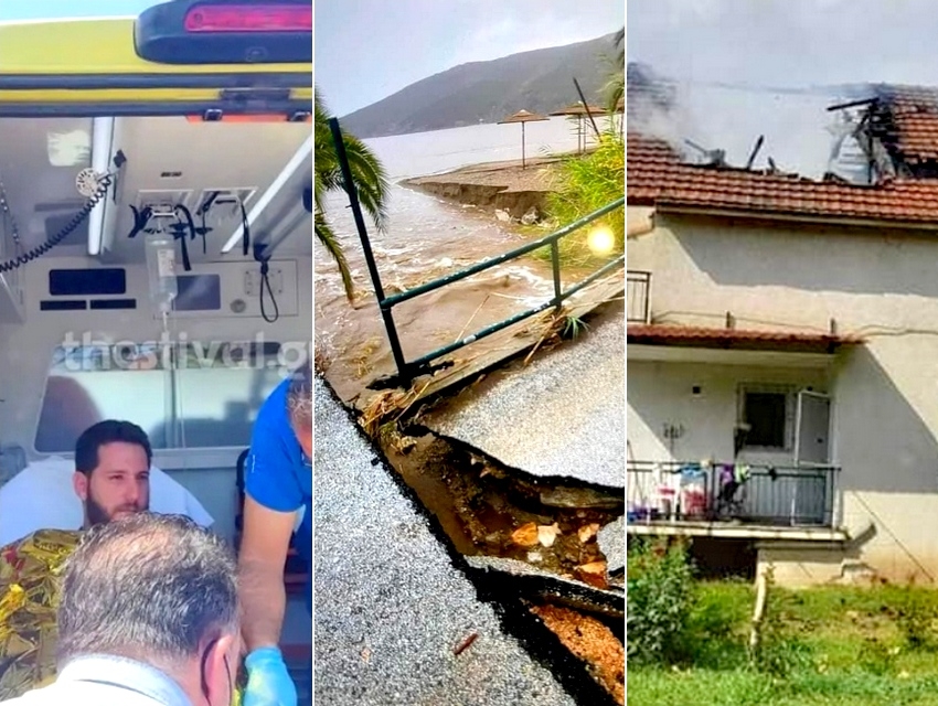 Στη Χαλκιδική τρεις άνδρες αγνοούνταν, βρέθηκαν οι δυο. Θάσος και Σκύρος «υποφέρουν» από πλημμύρες. Κεραυνοί… χτύπησαν και σπίτια.
