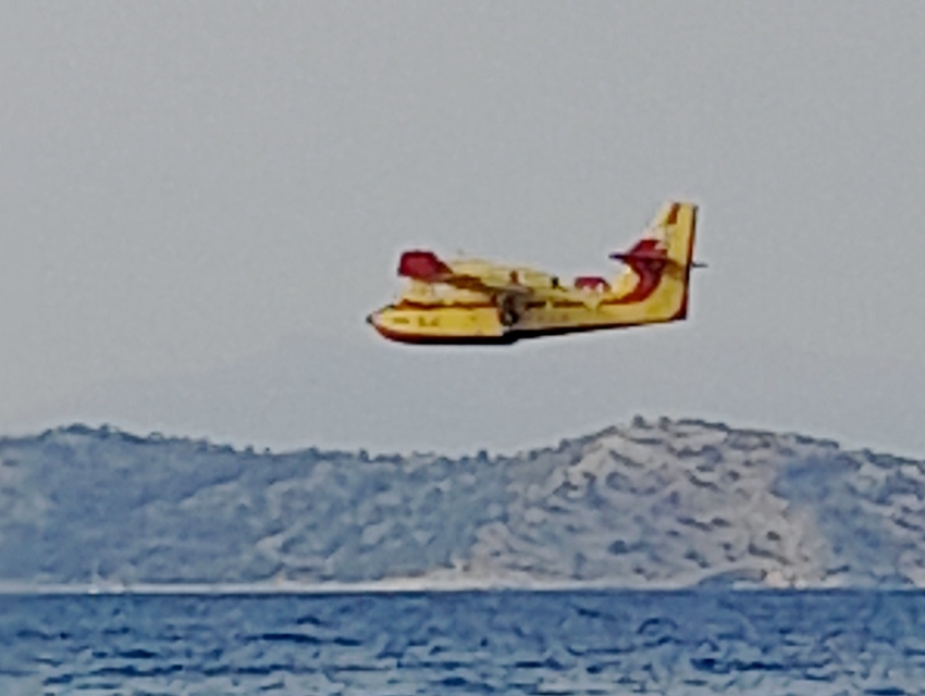 Τα πυροσβεστικά ελικόπτερα τύπου Erickson συνεχίζουν καθ’ όλη τη διάρκεια της ημέρας να κάνουν ρίψεις νερού στα μέτωπα όπου είχε αναζωπυρωθεί η φωτιά.