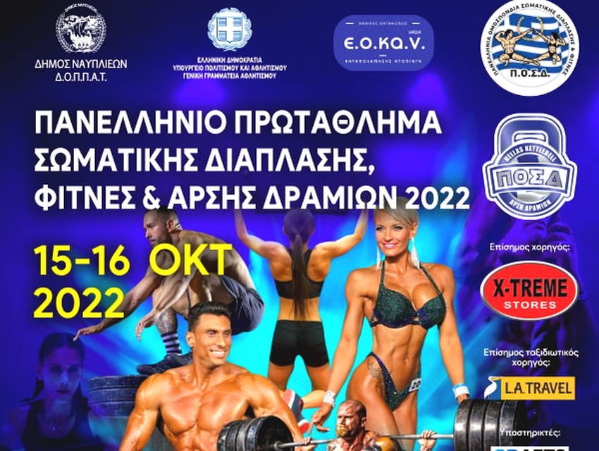 Το Σάββατο (15/10) και την Κυριακή (16/10) θα διεξαχθεί στο κλειστό Γυμναστήριο Ναυπλίου το Πανελλήνιο Πρωτάθλημα Σωματικής Διάπλασης,Φίτνες & Άρσης Δραμιών 2022.