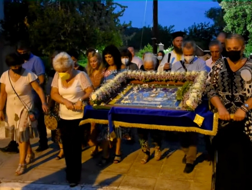 Μετά το πέρας των εγκωμίων πιστοί περιέφεραν τον επιτάφιο της Παναγίας σε όλη την περιοχή των Εργατικών κατοικιών προς ευλογία των κατοίκων.