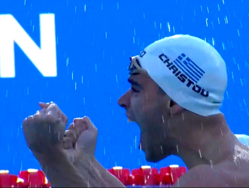 Στη σπουδαιότερη στιγμή της καριέρα του, ο έλληνας πρωταθλητής πήρε τη νίκη στον τελικό των 50 μέτρων ύπτιο και κατάφερε να ακούσει το εθνικό ύμνο, κάνοντας το όνειρό του πραγματικότητα.