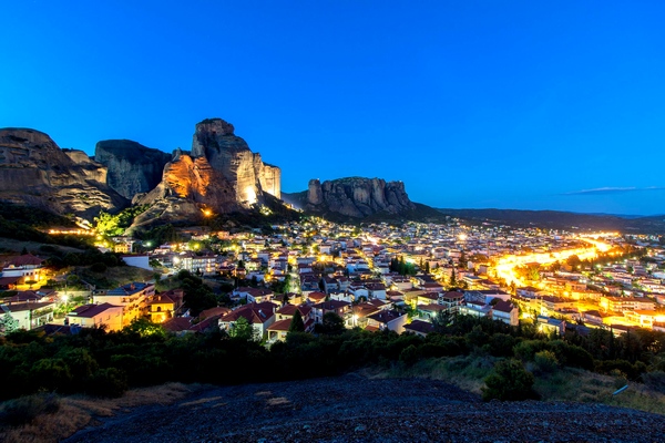 Αφού βγουν οι απαραίτητες φωτογραφίες, στη συνέχεια θα μας παραλάβει το λεωφορείο ώστε να επιστρέψουμε στο ξενοδοχείο για ξεκούραση και ετοιμασίες για επίσκεψη στη νυχτερινή Καλαμπάκα. Η όψη των τεχνητά φωτισμένων βράχων από τα χαμηλά της Καλαμπάκας είναι τόσο εντυπωσιακή όσο και απόκοσμη, θαρρεί κανείς πως οι βράχοι αιωρούνται.