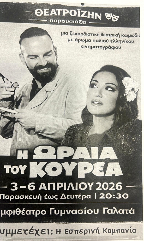 Βλέπετε, οι ερασιτέχνες ηθοποιοί του συλλόγου «Θεατροίζην» πρόσφεραν ξανά ξεχωριστές στιγμές ερμηνείας, ανεβάζοντας στη σκηνή το έργο «Η Ωραία του Κουρέα», πριν από το Πάσχα, από τις 3 έως και τις 6 Απριλίου και ο «Πολίτης Αργολίδας» θα παρουσιάσει και τη νέα μοναδική προσπάθεια όλων των συντελεστών της παράστασης που σκόρπισε σε όλους ενθουσιασμό και αισθήματα θαυμασμού.