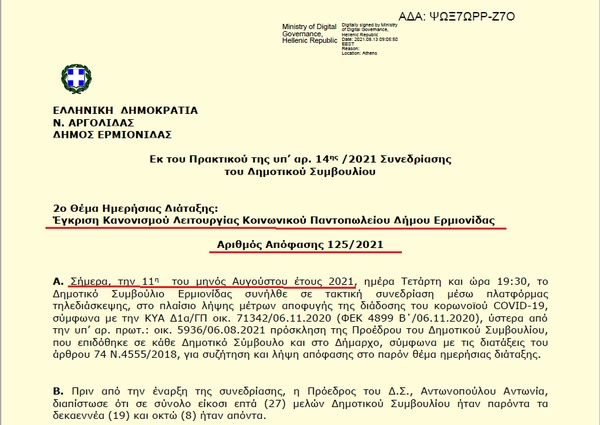Κάτι το οποίο έλαβε χώρα στις 11/08/2021 με την με την υπ’ αριθ. 125/2021 ομόφωνη Απόφαση του Δημοτικού Συμβουλίου Ερμιονίδας: